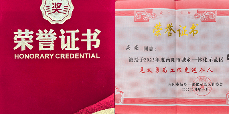 2004年8月榮獲南陽市五一勞動模范獎章